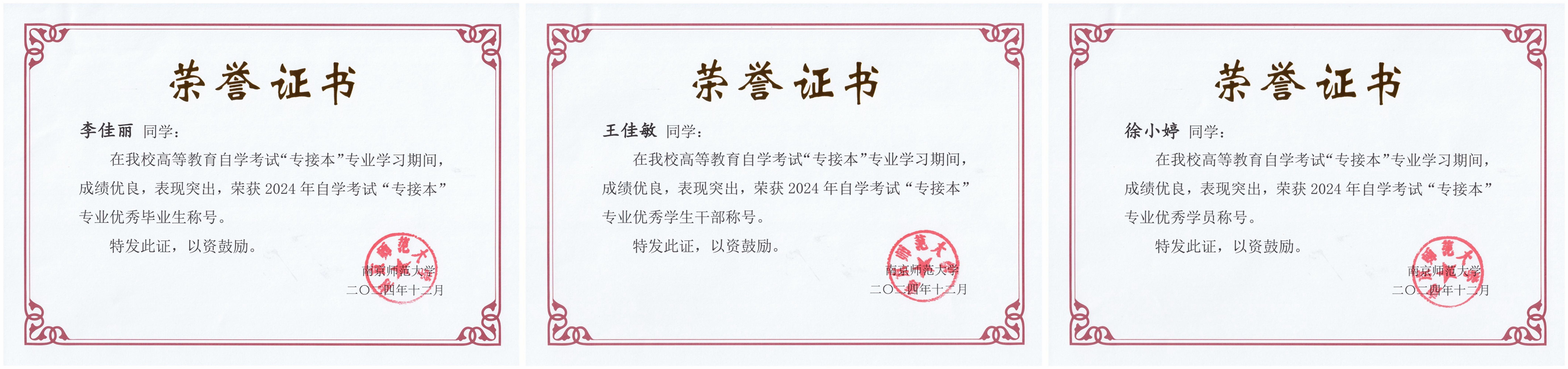 近日,我院“专接本”对接高校南京师范大学发文《关于表彰2024年自学考试优秀个人的通知》,现代服务与管理系22级旅游管理...