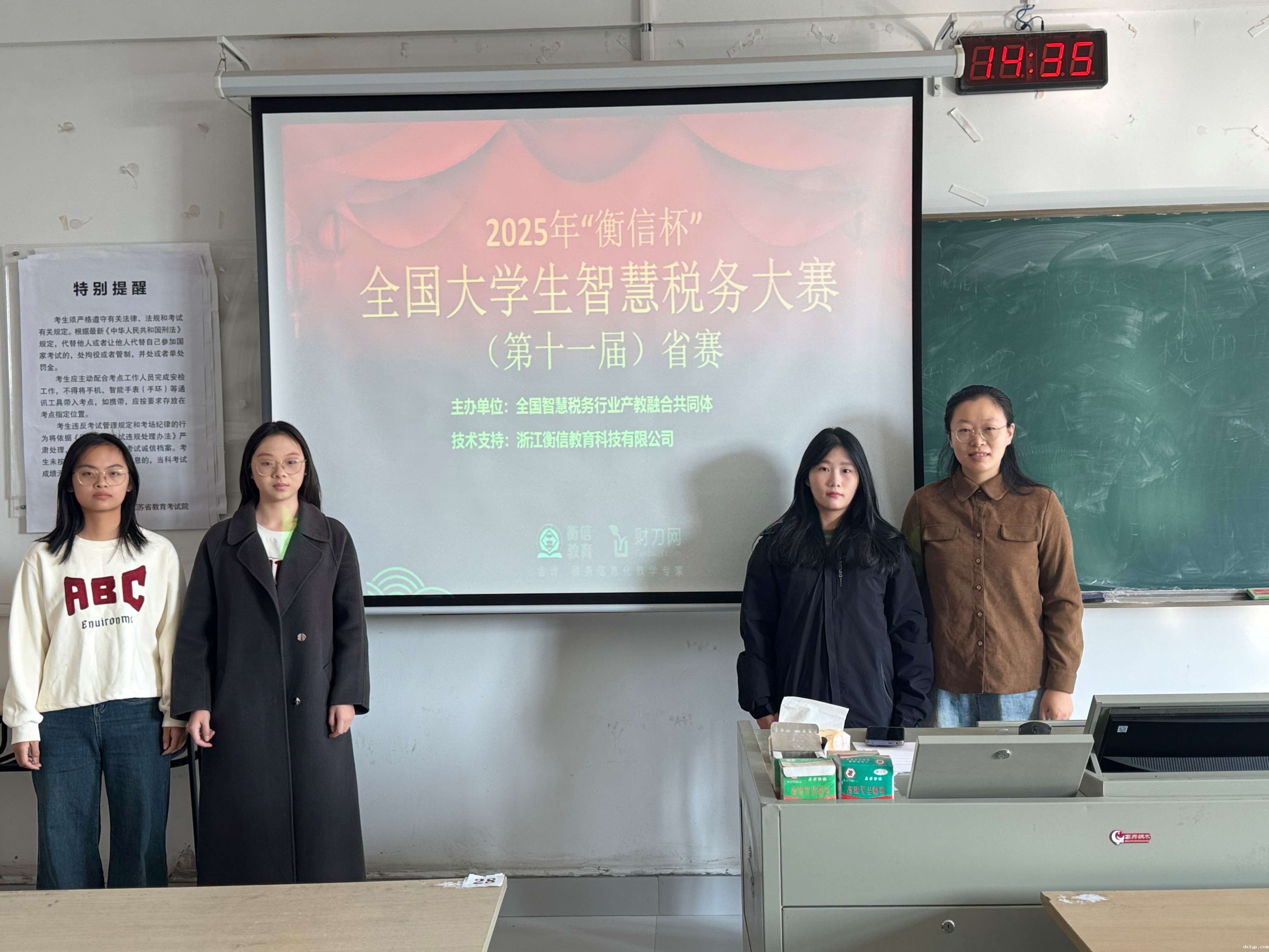 在2025年第十一届“衡信杯”全国大学生智慧税务大赛中,我校24会计专业的李玉婷、王文、朱菊同学组成的参赛团队,在财经商贸学院朱婉莹和李霞昌老师指导下,荣获江苏省三等奖。