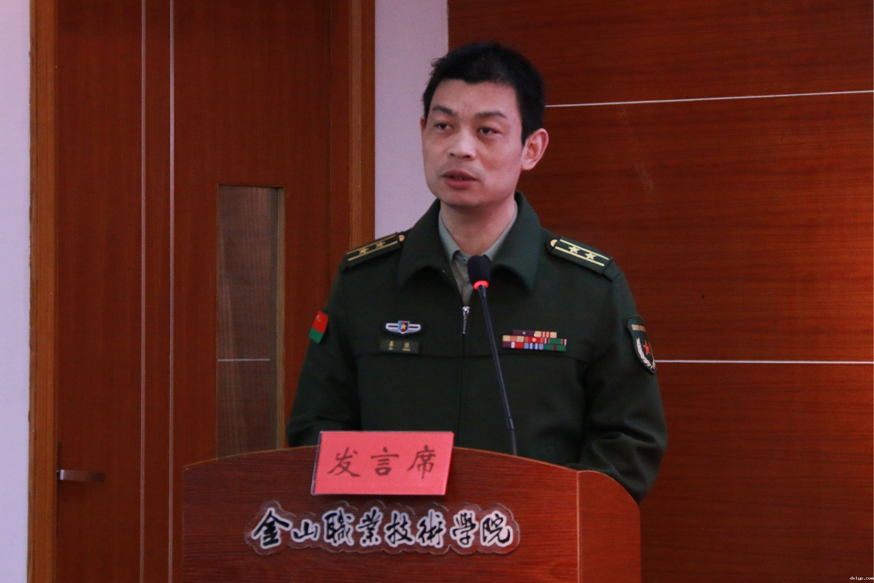 秦胜部长代表市委、市政府祝贺基地揭牌。他强调,要强化军地协同,发挥基地作用,做好新时代征兵工作。新时代青年学生应扛起参军报国使命,将爱国心转化为报国行动,投身军营,诠释精彩人生。金山学院要规范基地运行,组织特色文化活动,做好征兵宣传,建设优质兵员基地。同时,要立军令状,军地协同推进征兵工作,确保政策落地,为国防和军队现代化建设提供支持。
