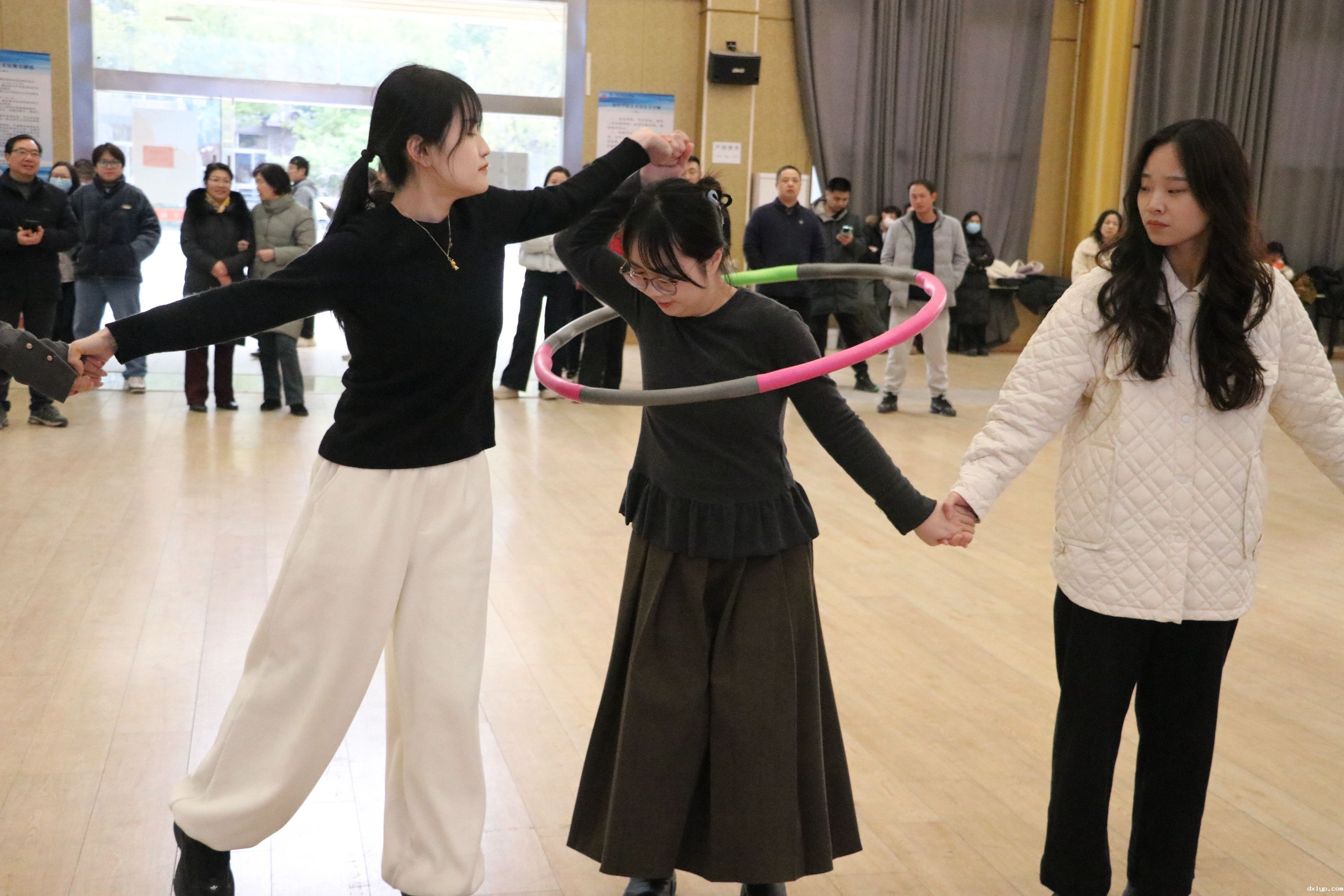 塑胶篮球场上,背靠背夹球赛场,搭档们背靠背、心连心,似紧密咬合的齿轮,稳步向前。拔河比赛紧随其后,拔河绳似紧绷的琴弦,在双方的较量中嗡嗡作响,大家齐心协力,将气氛推向了高潮。